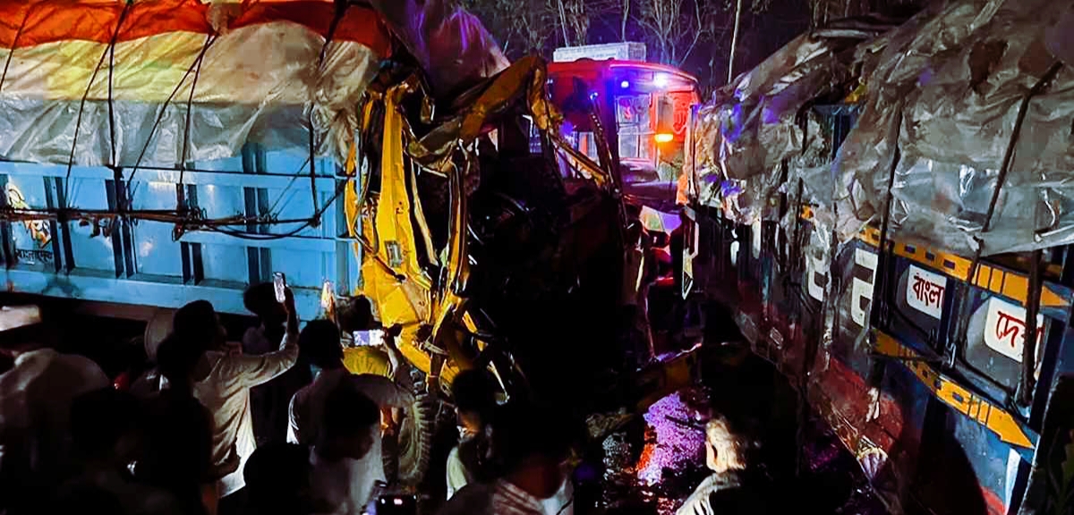 বগুড়ায় তিন ট্রাক ও যাত্রীবাহী বাসের মধ্যে ত্রিমুখী ভয়াবহ সংঘর্ষ! দেশজুড়ে শুধু মৃত্যুর মিছিল