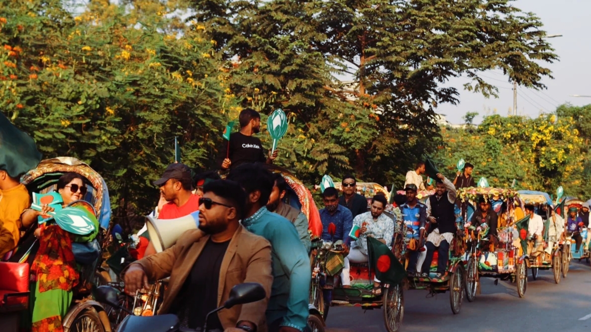 বিজয়ের মাসকে স্বাগত জানিয়ে ঢাকা–১৩ আসনে এনসিপির রঙিন রিকশা র্যালি